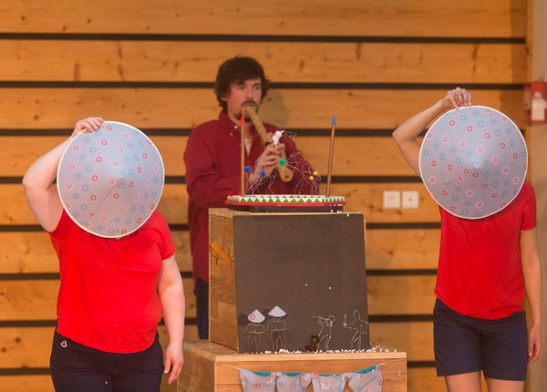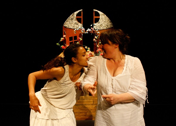 Sur une scène occupée par un cube et quelques caisses, une comédienne et une danseuse racontent l’histoire et incarnent ses personnages. Avec organisation et modération d’abord. Mais Gerda n’est pas la seule à déraper sur les routes verglacées du conte. Peu à peu, entrainées par les objets qu’elles sortent des caisses, fascinées par la neige qui tombe, la rivière qui coule, les oiseaux qui volent et le renne qui galope, les demoiselles s’emballent et succombent au plaisir de jouer comme les sales gosses : le plus sérieusement du monde.